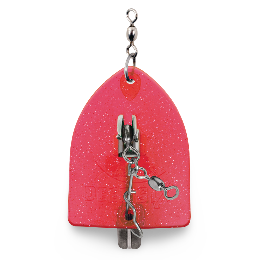 Diving with a steep angle of descent to reach fish quickly and with complete control, Deep Six and Double Deep Six divers are beloved by West Coast salmon anglers. The key to the diver's success is an adjustable, positive trip mechanism that can be set to handle the strongest currents and fastest troll speeds, while still tripping on the strike or manually tripped by the angler for easy retrieves. Double Deep Six models feature double the keel weight than standard models, providing the fastest and deepest dives short of a downrigger.